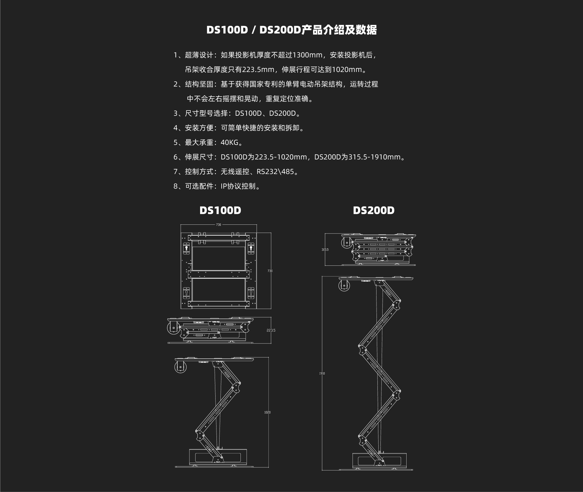 DS系列 超薄投影机电动吊架
